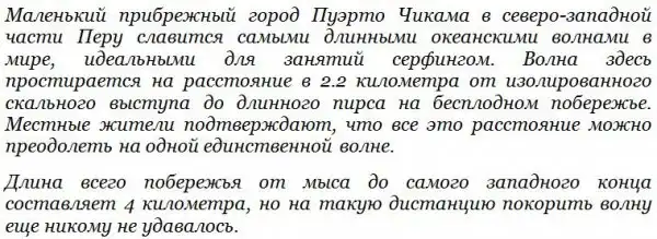 Бесконечный ряд идеальных для серфингиста волн является привычным зрелищем в Чикама. “Если Вы сбились, или нуждаетесь в отдыхе — просто ожидайте следующей волны, которая идет прямо позади! Это — мечта” — говорит австралийский серфингист Бен Херрготт.
