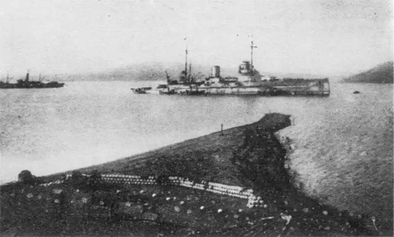 Но беды крейсера только начинались. Около 9 часов прогремели сразу два взрыва – они пришлись на котельное отделение левого борта. «Бреслау» лишился теперь не только управления, но и хода, и начал дрейфовать с креном на левый борт и дифферентом на корму. Примерно через 10 минут произошли еще два взрыва. Хиппель приказал команде немедленно оставить крейсер. Агонизирующий корабль начал погружаться кормой и вскоре затонул. Британские эсминцы «Лизард» и «Тайгрисс», прошедшие мимо места гибели «Бреслау» через полтора часа, подняли из воды 162 человека. «Гебен» не мог себе позволить вести спасательные работы и начал выбираться с минного поля. Связавшись с базой, он затребовал немедленного прихода эсминцев, чтобы те могли спасти хотя бы часть команды легкого крейсера. Четыре турецких эсминца, стоявших в полной готовности на выходе из Дарданелл, немедленно вышли в море. Уже и речи не могло быть ни об обстреле Мудросской гавани, ни о прочих диверсиях – главной задачей на этот момент было обеспечение возвращения «Гебена». Не дойдя примерно 5 км до места гибели «Бреслау», турецкие эсминцы вступили в бой все с теми же «Лизардом» и «Тайгриссом». Причем на этот раз британцы стреляли метко: «Басра» получила два болезненных попадания 102-мм снарядами, один из ее отсеков был затоплен. Турки решили не испытывать судьбу и отвернули назад. Английские эсминцы гнали их до тех пор, пока не попали под огонь береговых батарей форта Сед-эль-Бар.