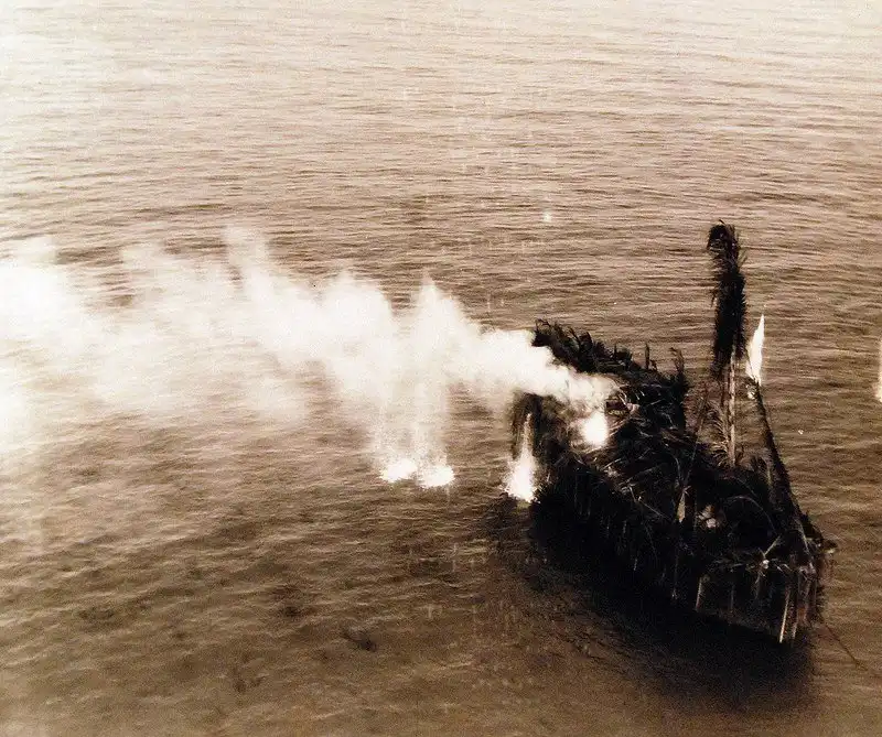 Британский авианосец «Корейджес», торпедированный