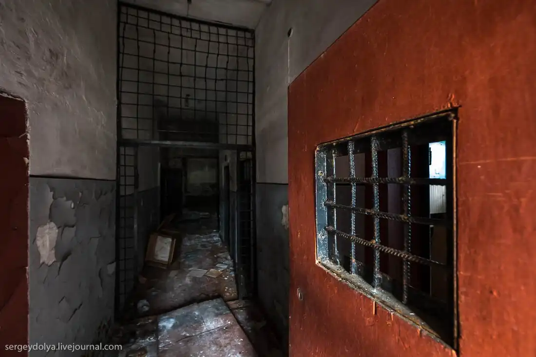 Надпись: "В карауле, как на войне - будь бдительным вдвойне". Это карцер: