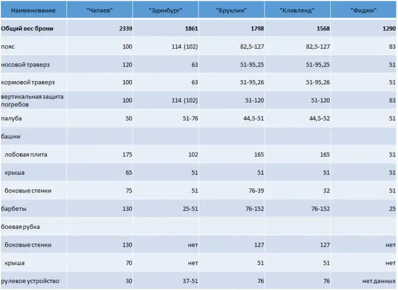 Интересно сравнить уровень бронирования «Чапаева» и иностранных крейсеров довоенной постройки, и тех, что закладывались в начальный период войны.