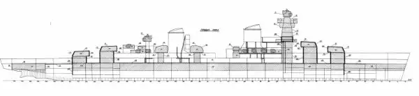 Крейсера проекта 68 получили практически те же котлы и турбины, что и корабли предыдущего проекта 26-бис. Их расположение в корпусе корабля (три котла, турбина, три котла, турбина) также повторяло аналогичное устройство 26-бис. И это было логично, потому что от добра добра не ищут – мало того, что подобное расположение обеспечивало достаточно высокую живучесть энергетической установки, но оно позволяло существенно улучшить живучесть корабля в целом. Это было связано с тем, что за счет вышеперечисленного расположения ширина котельных и машинных отделений советских крейсеров была относительно невелика и значительно меньше ширины корпуса в месте их размещения. Хотя крейсера типа «Киров» и «Максим Горький», строго говоря, не имели противоторпедной защиты (ПТЗ), но ее роль с успехом выполняли множество небольших герметичных отсеков, располагавшихся вдоль бортов, причем ширина такой импровизированной «ПТЗ» доходила до 4,1 метра.