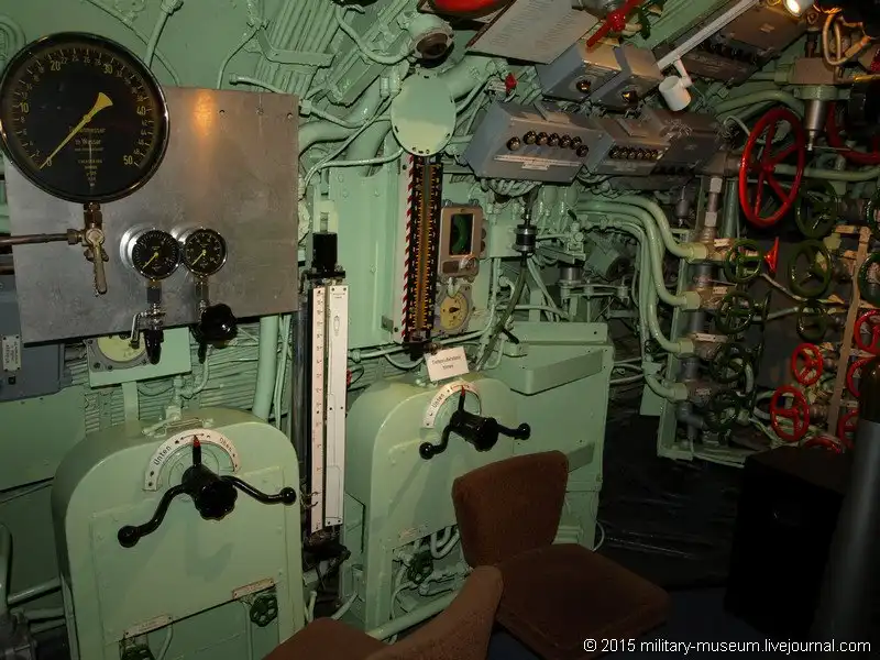 Судьба исследованной нами подлодки была, кстати, такова: U 2540 была заложена 29.10.1944 г. в Гамбурге, на верфи Blohm & Voss. Спуск на воду состоялся 13.01.1945, а уже 24.02.1945 она официально вступила в строй и была зачислена в 31-ю флотилию ПЛ. Поскольку опытный личный состав был на тот момент уже в сильном дефиците (особенно для ПЛ нового типа), лодка лишь в апреле 1945 г. отправилась на т.н. "фронтовые учения" в Балтийское море, где она и встретила последние дни войны. Попетляв по разным немецким ВМБ и поняв, что "выхода нет" и "всё пропало", она была затоплена своим экипажем на дне Фленсбургского фьорда. Пролежала она там до 1957 г., когда была поднята и заботливо починена. При этом многие оригинальные детали были утеряны. С 1958 г. U 2540 служила опытной ПЛ в составе немецких ВМС, причём с 1960 г. - под именем "Вильгельм Бауэр". Кстати, этот Вильгельм Бауэр был занятный человек, я про него как-нибудь напишу отдельный пост.