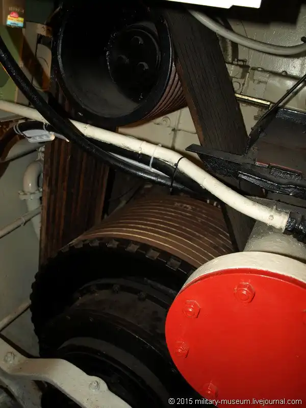 Ременная передача вспомогательного электромотора (они расположены перед основными, ближе к щитам управления и, соответственно, дальше от кормы):
