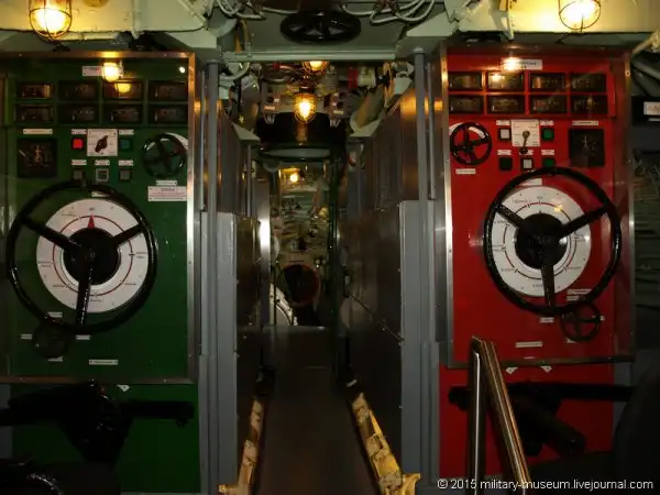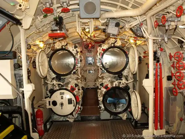 Но, перед выходом на поверхность, мы заглянем в последний, шестой отсек - кормовой. Там расположен резервный пост управления рулями, баллоны с сжатым воздухом и устройства для отстрела ложных целей и установщиков помех: