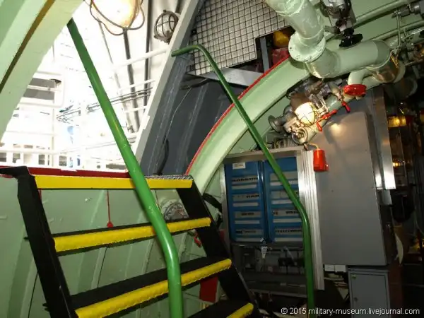 Если смотреть со стороны камбуза, то хорошо видна шахта шнорхеля, проходящая через центральный пост в рубку (и затем за неё):