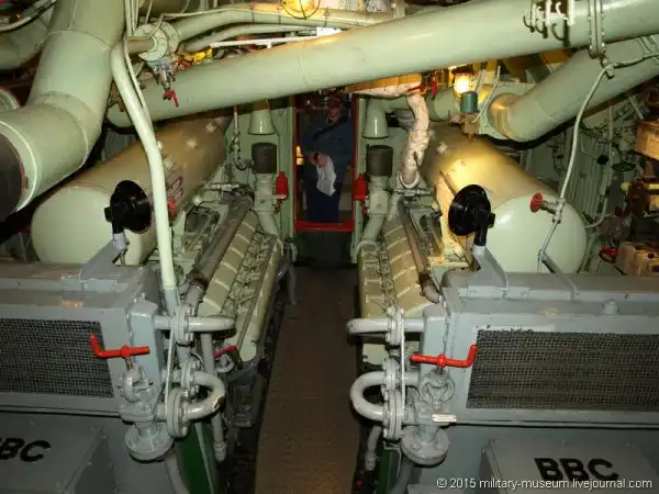 Дизели отгорожены переборкой от управляющей аппаратуры (она расположена в том же отсеке):