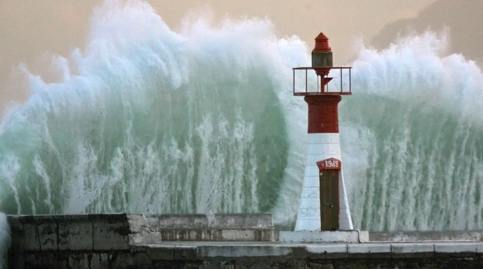 Северный мол и маяк - шторм зима 1953 года в Сочи