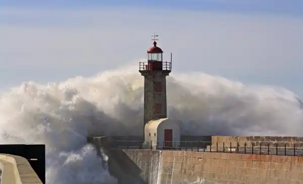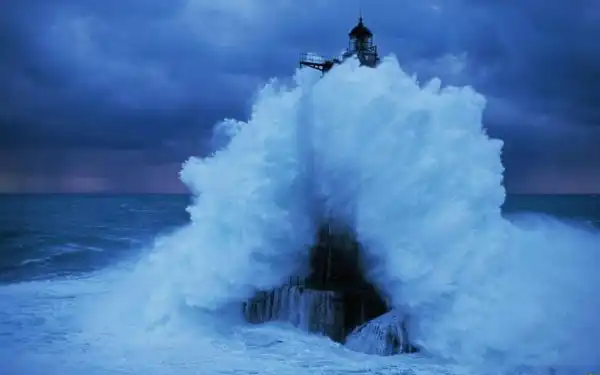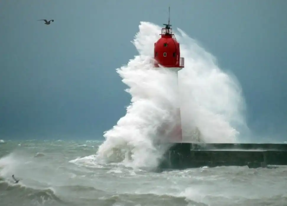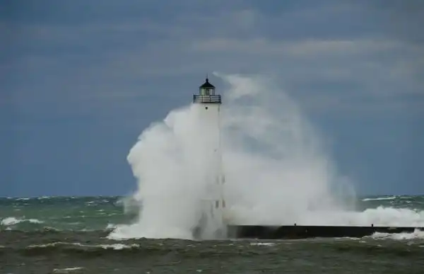Волны на озере Мичиган в 17-22 фута высотой, во время