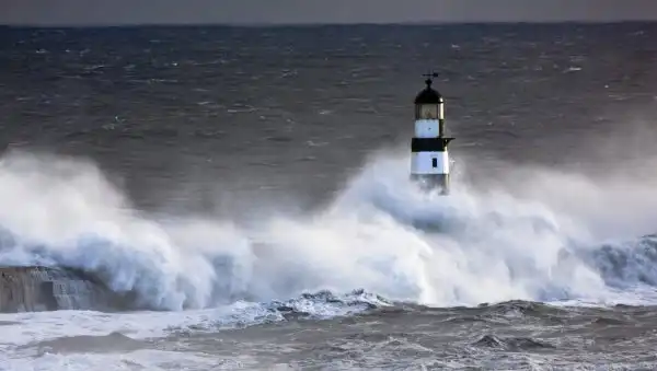 и бурные моря у Маяка Roker.” Фотография Гэйл Джонсон