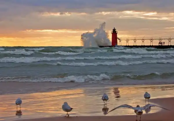 Волнорез и маяк Лудингтона. Озеро Мичиган.