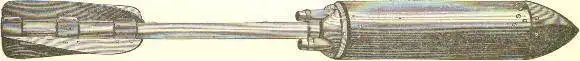 Ствол длиной 55 футов (17 м) выступал над палубой только на 4,6 м, тогда как остальные его части помещались внутри корпуса. Конструкция ствола была разделена на два основных блока. Один из них, представлявший собой центральную и дульную части ствола, крепился стационарно и не мог перемещаться. Второй блок ствола монтировался на шарнире и мог качаться в вертикальной плоскости при помощи соответствующих приводов. Казенная часть этого агрегата была наглухо закрыта затворной плитой с трубопроводами для подачи сжатого газа. Для ведения огня качающийся блок ствола должен был подниматься в верхнее положение под 16° к горизонтали. Для перезарядки предлагалось опускать ствол в горизонтальное положение. Оба блока ствола не имели нарезов.