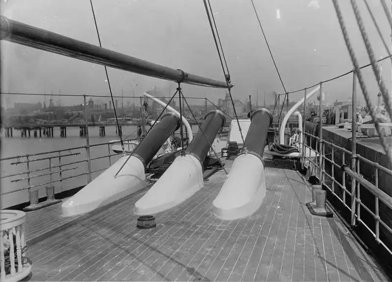 Внутри орудийного отсека также предусматривались места для размещения баллона сжатого воздуха. Баллон и два компрессора с паровым приводом, соединенным с главными котлами, могли обеспечивать давление до 1000 футов на кв.дюйм (70 атмосфер). Емкость баллона и производительность компрессоров позволяла производить подготовку к новому выстрелу за несколько минут. При помощи трубопроводов, манометров и клапанов артиллеристы должны были управлять работой пневматической части и ее взаимодействием с орудиями.