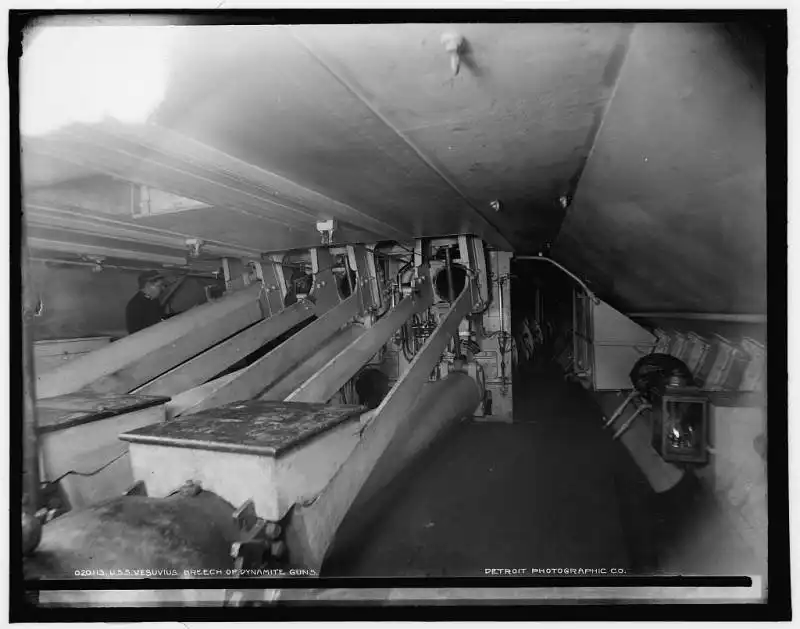 Вскоре после завершения строительства первый в мире корабль, вооруженный динамитными орудиями, вышел на испытания с проверочными стрельбами. Испытания показали, что USS Vesuvius отвечает предъявленным требованиям по размерам и ходовым характеристикам, а также обладает высокой огневой мощью. Было установлено, что при максимальном давлении в канале ствола дульная скорость снаряда, в зависимости от его типа, может достигать 800 футов в секунду (243 м/с). Наиболее тяжелый снаряд с 550 фунтами взрывчатого вещества летел на расстояние не более 1 мили. 200-фунтовый боеприпас имел дальность стрельбы порядка 4 тыс. ярдов (3700 м). Также корабль показал неплохую скорострельность. Во время испытаний 15 выстрелов из трех орудий были выполнены за 16 мин 50 с.