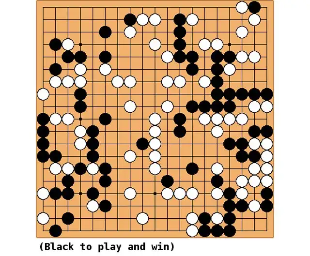 Го была придумана в Китае более 2,5 тыс лет назад, так что это одна из самых древних игр на Земле. Несмотря на достаточно простые правила, она по-прежнему привлекает тысячи людей возможностью решения интересных стратегических задач. Цель игры — огородить камнями своего цвета большую территорию, чем противник. Изображённая выше ситуация — одна из самых сложных в истории го: на её решение опытнейшие игроки потратили более 1 тыс часов игрового времени. Каким образом в этой партии могут победить чёрные?