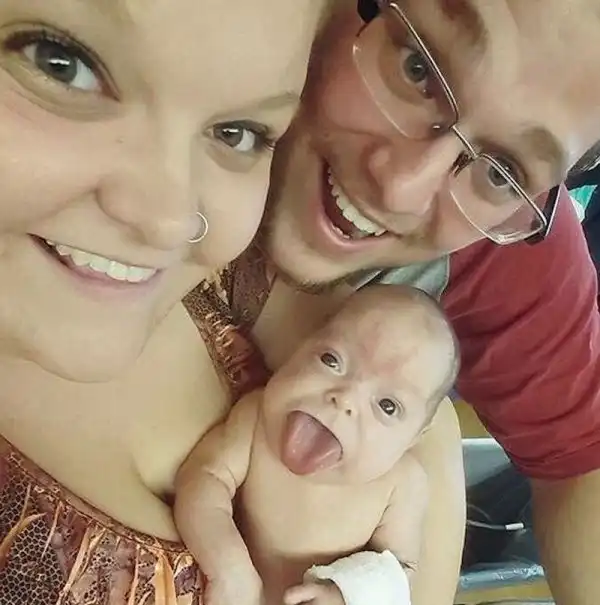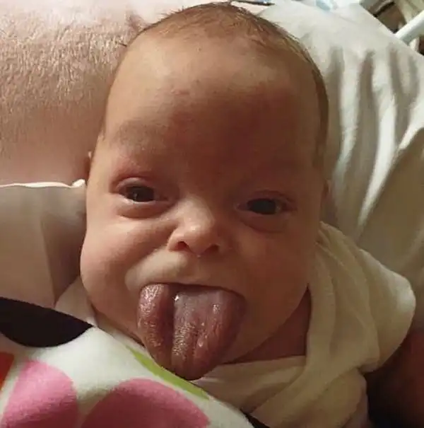 Мама девочки, Мэдисон, говорит, что даже не догадывалась о синдроме дочери до самого ее рождения: "Во время кесарева сечения они достали ее и увидели огромный язык". Девочку сразу подключили к аппарату искусственного дыхания.