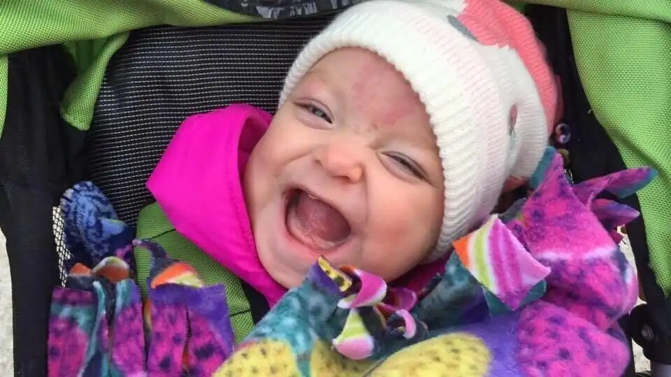 Малышка, родившаяся с огромным языком, наконец-то может улыбаться
