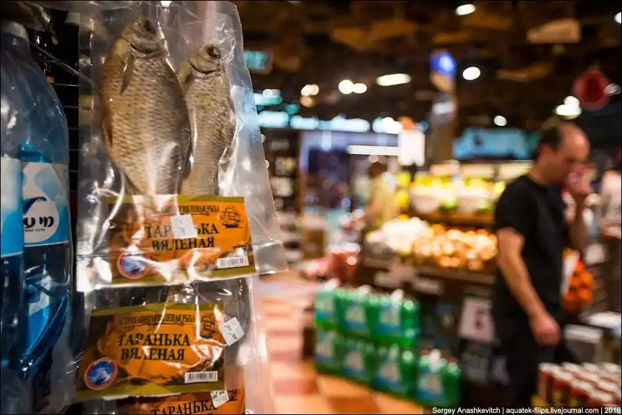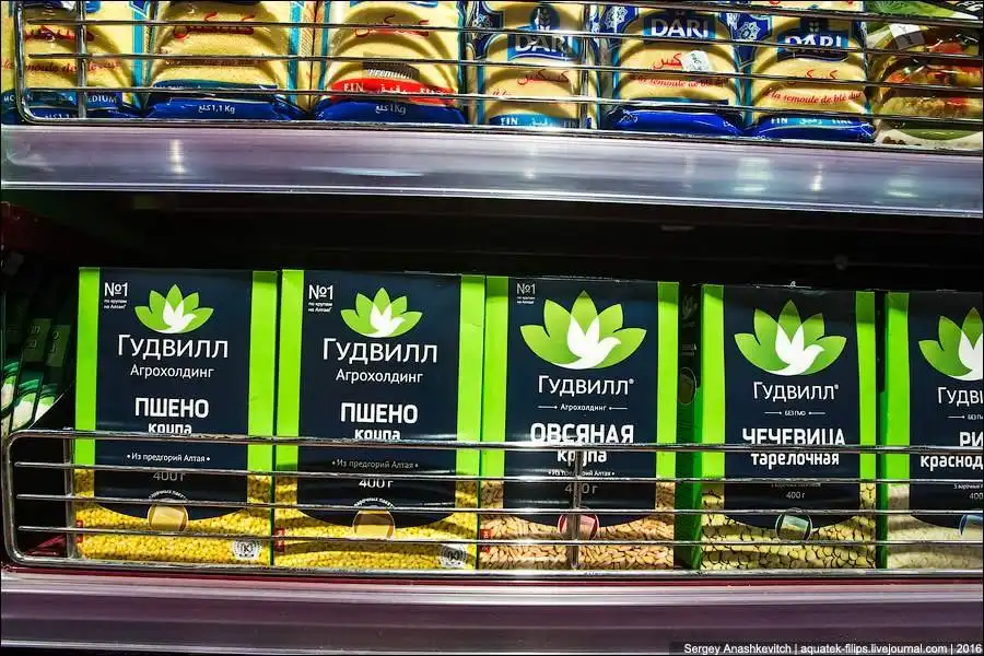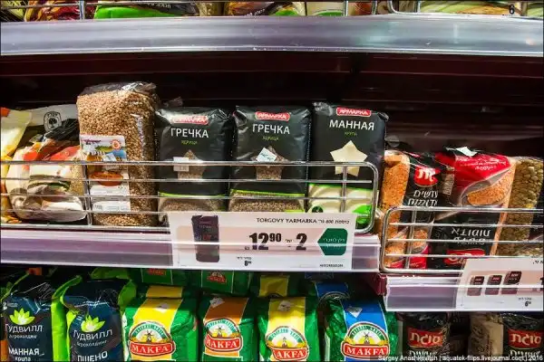 Вездесущий "Быстров", он и тут пользуется спросом. А еще украинские макароны и крупы
