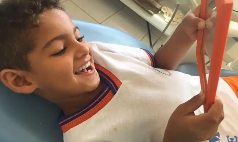 Шестилетний мальчуган Райан Коутиньо из бразильского города Гуажеру остался практически без зубов после того, как они начали гнить. Его мама устроилась уборщицей в клинику, где познакомилась с 25-летним стоматологом Амандой Маттос. Узнав о беде мальчика, девушка согласилась бесплатно одарить его новой улыбкой.