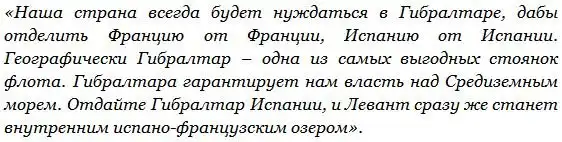 Гибралтар же продолжил оставаться одним из краеугольных пунктов господства на море. Английские эскадры, базирующиеся на Скалу, по-прежнему отделяли «Францию от Франции, Испанию от Испании».