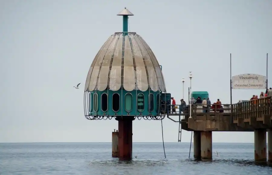 Расположенная на острове Узедом в Цинновице, Германия, выглядящая как небольшая беседка в стиле модерн, эта кабинка на самом деле является первым в мире подводным лифтом.