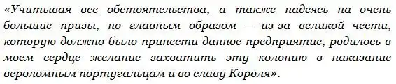 Раз в год из залива Гуанабара выходил Португальский конвой, являвшийся аналогом знаменитого испанского «серебряного флота». Все сокровища под охраной двух или трёх сильно вооружённых кораблей после четырёхмесячного плавания приходили в гавань Лиссабона, а оттуда расходились по миру. Чаще всего – в Англию, которая имела с Португалией договор о беспошлинной торговле и, по сути, являлась крупнейшим перекупщиком португальских товаров.