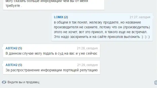 Пишет автор:После диалога с продавцом сижу в ступоре, вот как бывает... Там где черным закрашено это название сайта продавца, что бы не рекламировать.