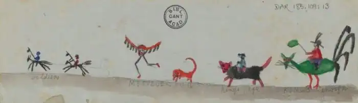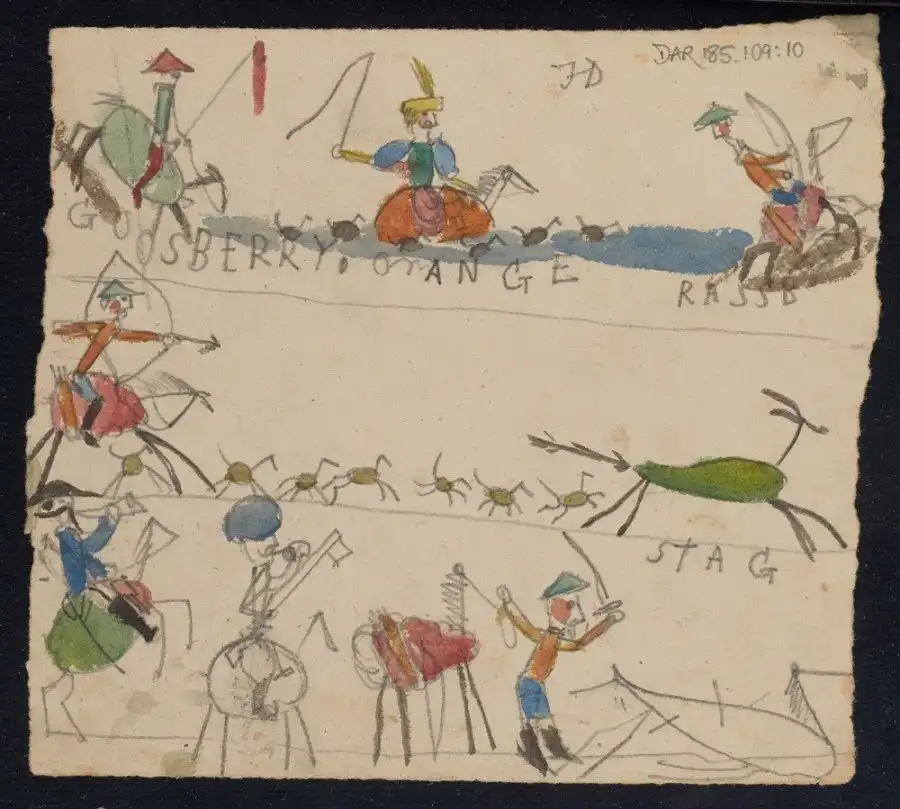 На обратной стороне листа нарисованы картинки, созданные детьми ученого.