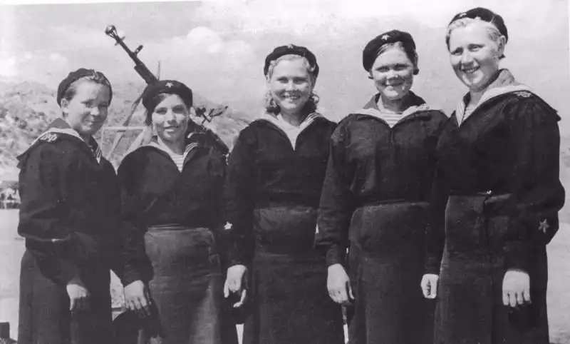 Слева направо: краснофлотцы Агния Шабалина (моторист),