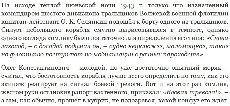 Зачем же потребовалось в переломный военный год, когда ход войны изменился в нашу пользу, превращать вятский газоход в тральщик, да ещё на тыловой реке Волге?