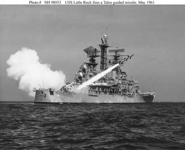 И надо сказать, что даже первые появившиеся крейсера и эсминцы УРО не сделали корабли проектов 68-бис бесполезными в морском бою. Конечно, американские ЗРК «Терьер» и «Талос» представляли собой не только противовоздушное, но и весьма мощное противокорабельное оружие, которое можно было использовать в пределах прямой видимости. Но следует отметить, что «Терьер», в силу нюансов своих радаров, очень плохо видел низколетящие цели, и от этого не слишком-то хорошо работал по надводным кораблям на больших дальностях. Другое дело ЗРК «Талос, который был специально доработан так, чтобы ракета сперва поднималась в воздух, и потом, с высоты, обрушивалась на корабль, нанося ему колоссальные повреждения. Это оружие было чрезвычайно опасным против любого надводного корабля по линкор включительно, но и у него имелись свои маленькие сложности. ЗРК был тяжел и требовал множество различного оборудования, отчего даже тяжелые крейсера имели проблемы с остойчивостью после его размещения. Поэтому в состав ВМФ США вошли всего 7 кораблей с этим ЗРК (все – в период с 1958 по 1964 гг)