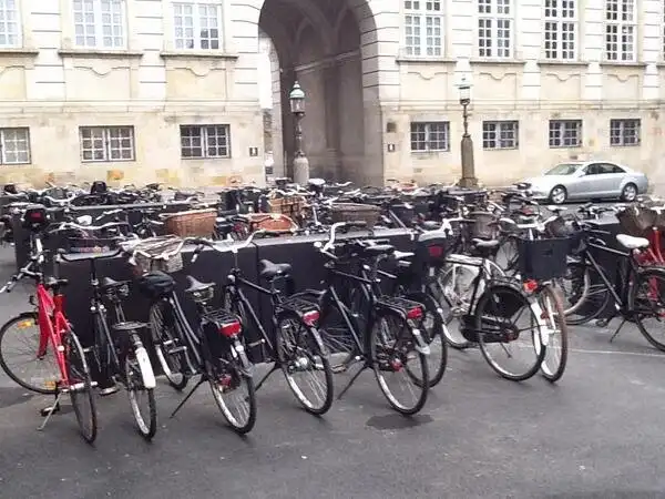 Парковка персонального депутатского транспорта у входа в парламент Дании