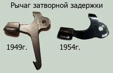На пути к серийному производству ПМ лишился одной своей характерной особенности. У пистолетов 1949 г.в. при замене пустого магазина на полный затвор автоматически сбрасывался с задержки. Для этого на рычаге затворной задержки имелась так называемая "нога", а на магазине — наклонная направляющая; при вставке магазина направляющая отклоняла "ногу", и происходил сброс с задержки. С 1953г. рычаг стал выпускаться без "ноги", направляющей на магазине тоже не стало. Что стало причиной? Если при перезарядке палец стрелка лежал на спуске, происходил выстрел, который мог привести к несчастному случаю. От полезной, но опасной функции было решено отказаться.