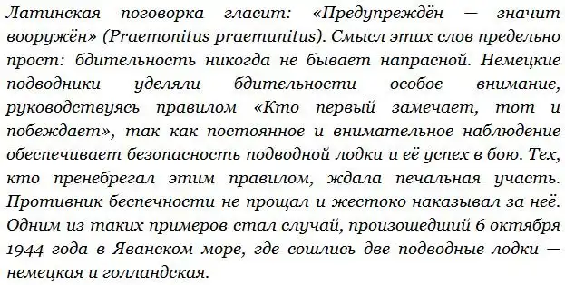 Стоит отметить, что приказ об усилении бдительности был своевременным, но не принёс желаемого результата. Вскоре 33-я флотилия лишилась в Яванском море ещё двух лодок: U 532 в ноябре 1944 года и U 183 в апреле 1945 года. Обе стали мишенями торпед американских субмарин. В итоге за свою историю группа «Муссон» потеряла от действий субмарин союзников четыре подлодки (без учёта транспортной лодки UIT 23, потопленной британской субмариной в феврале 1944 года). Принцип «предупреждён — значит, вооружён» не помог немецким подводникам на Дальнем Востоке избежать этой опасности…
