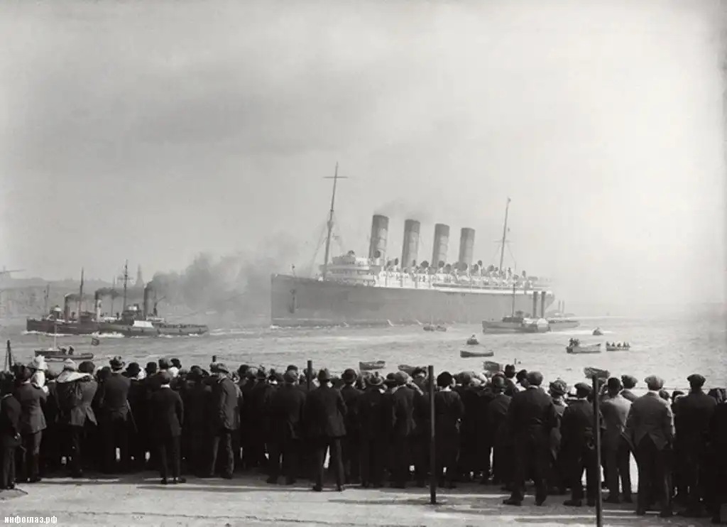 Оба лайнера все предвоенные годы работали без приключений, если не считать один эпизод, когда Лузитанию… накрыла волна и залила рубку, находившуюся на высоте 25 м над водой. Рубка была разбита, повреждены шлюпки, многие из тех, кто находился в рубке и на открытой палубе, получили ранения, но уже через 40 минут Лузитания продолжила плавание.