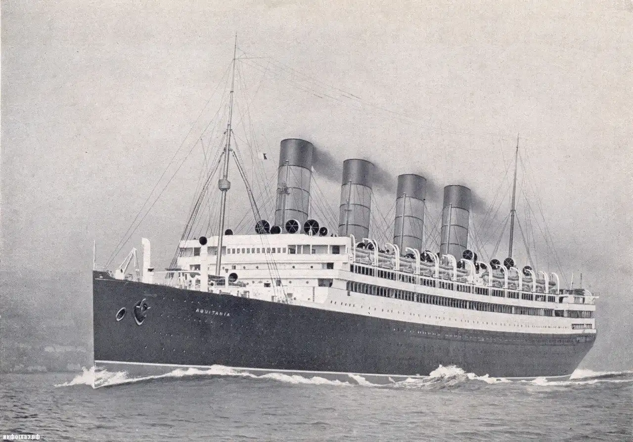 Любопытный эпизод произошел с Аквитанией в начале второй мировой войны. Исполинский пароход с потушенными огнями приближался к берегам Европы. Внезапно у французского побережья к лайнеру подошел английский эсминец и засигналил: «Четырехтрубный пароход, сообщите ваши позывные», на что раздраженный капитан ответил: «Неужели вы не знаете, что в мире сейчас существует только один четырехтрубный пароход?»