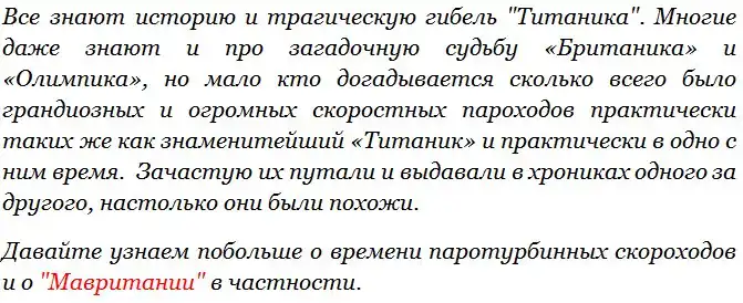 Итак, оба лайнера легко завоевали Голубую ленту и стали подлинными королевами Атлантики, но судьбы этих прекрасных пароходов сложились по-разному, Мавритания много лет была безраздельной владычицей символического приза, а Лузитания трагически погибла в годы первой мировой войны, но об этом рассказ впереди.