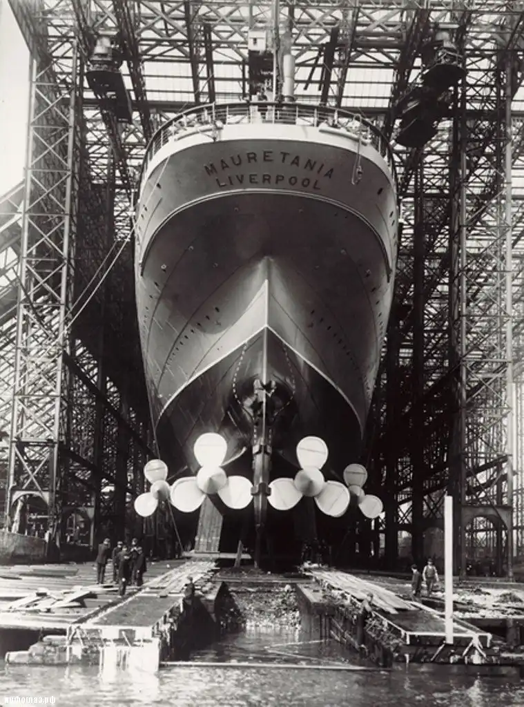 «Мавритания» возвращается на верфь, где её угольные котлы