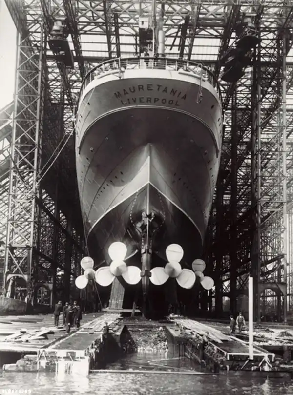 А через несколько месяцев, 20 сентября того же года, на верфи на реке Тайн был спущен на воду второй гигант — Мавритания. Здесь предстояло решить более трудную задачу: ведь длина Мавритании (240 м) равнялась ширине реки, так что спускать судно пришлось наискось реке. В результате процедура спуска затянулась и длилась… 70 секунд.