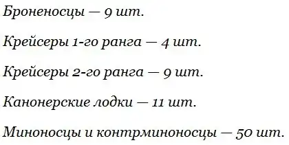 Помимо того, следовало построить 8 канонерских лодок и 12 миноносцев для Сибирской флотилии.