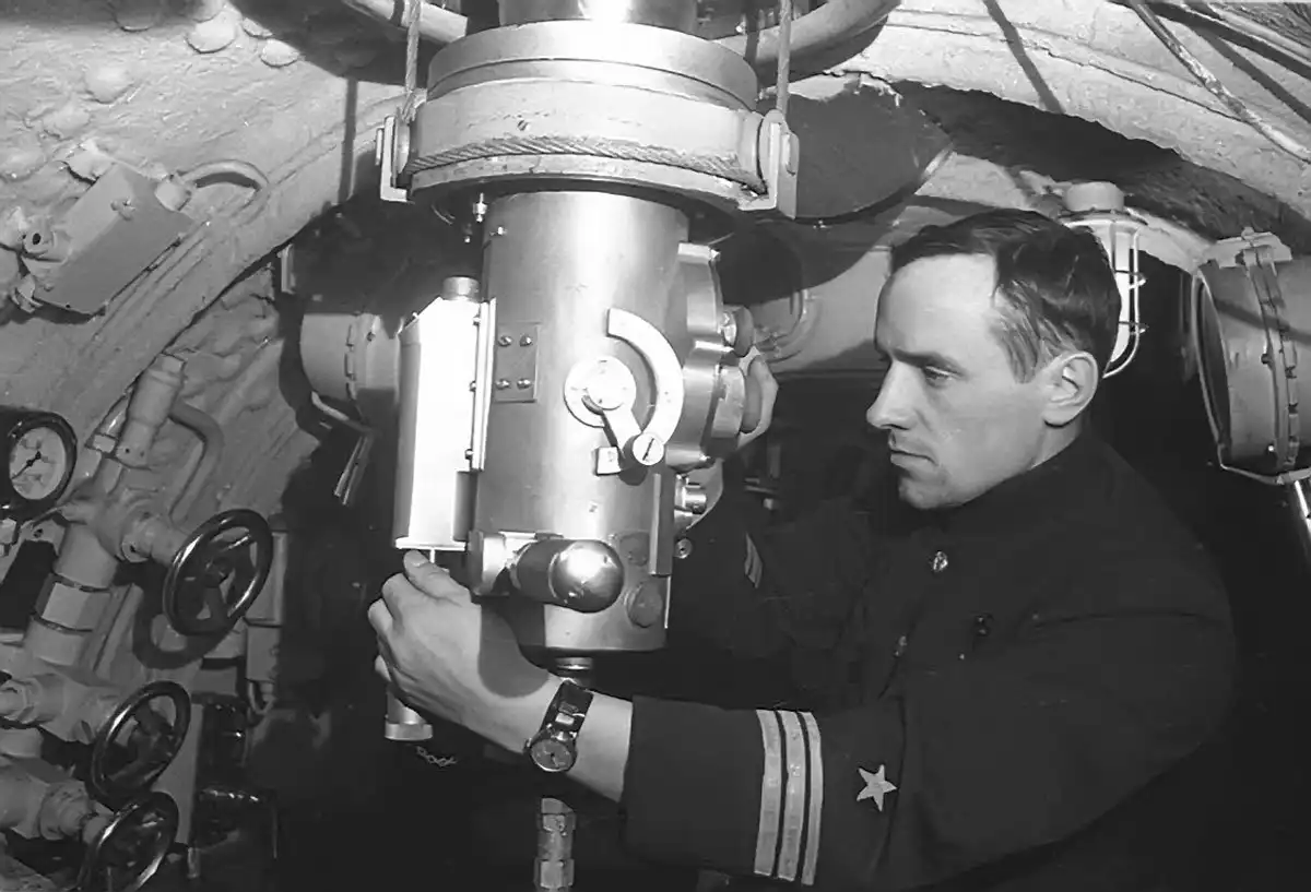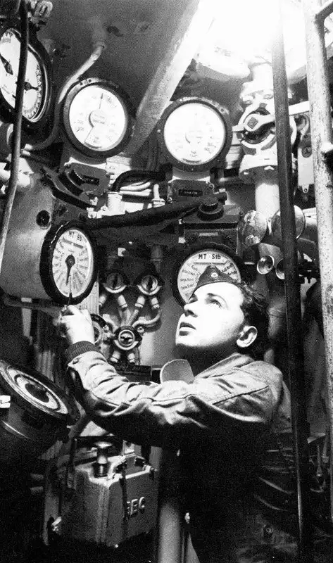 Рулевой в боевой рубке немецкой подводной лодки. Фото вероятнее