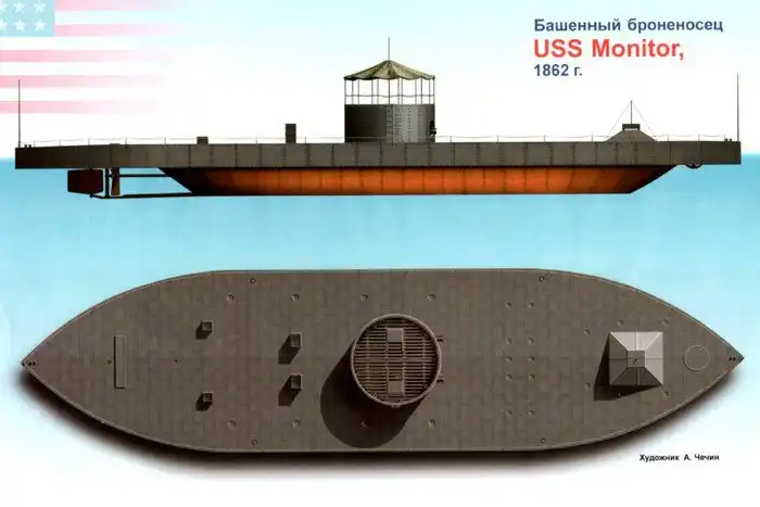 Гражданская Война в США была первой, в которой обе стороны активно применяли паровой и броненосный флот. К началу конфликта, уязвимость деревянных кораблей от тяжелых фугасных снарядов была уже очевидна, но переход к броненосному кораблестроению шел медленно.