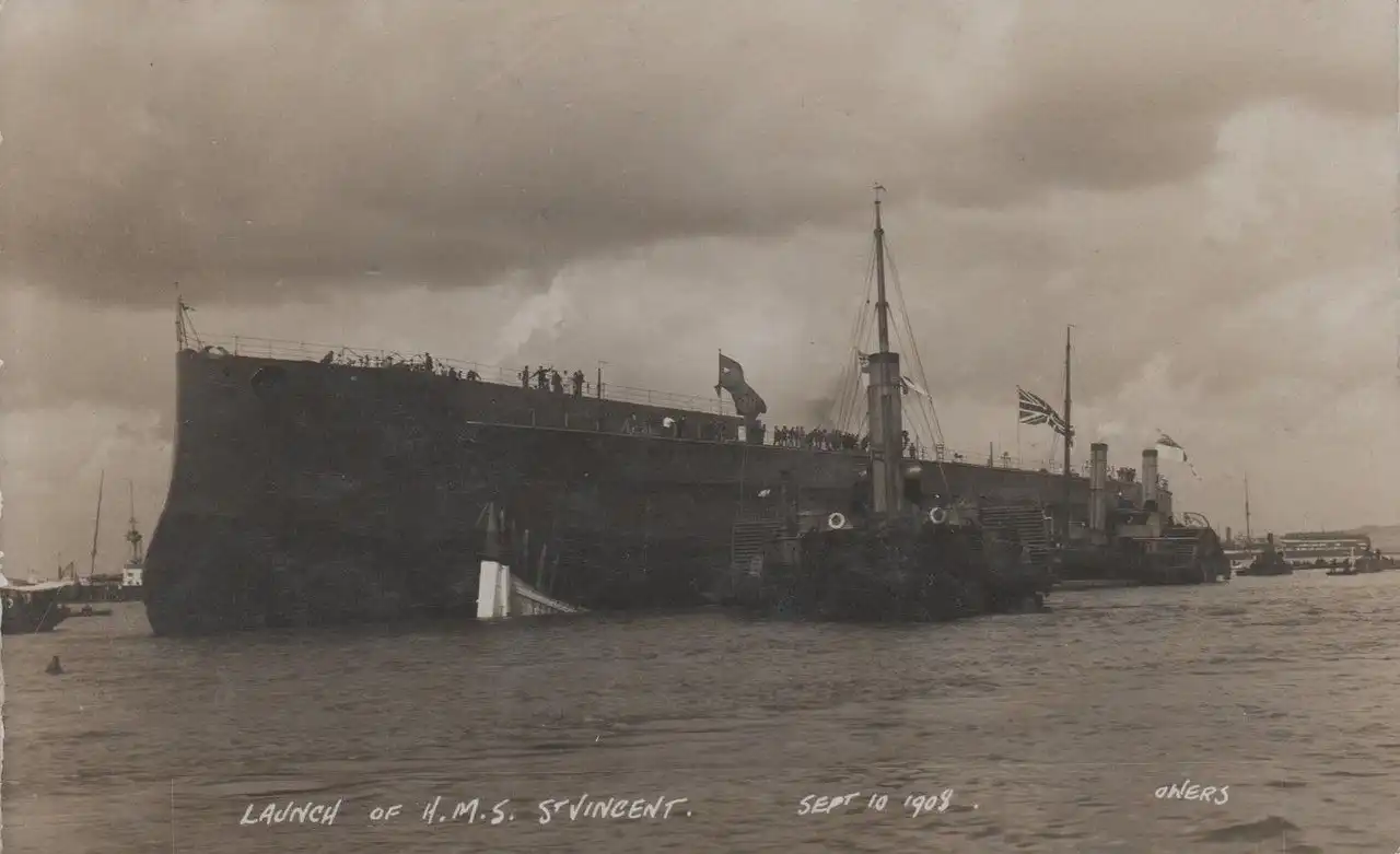 Линкор Сент Винсент после спуска на воду 10 сентября 1908 г.