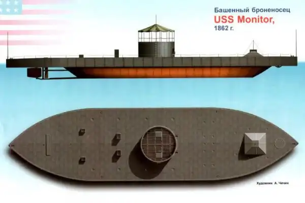 Война существенно ускорила процесс; южане начали строить броненосные корабли в надежде компенсировать численное преимущество деревянного флота северян, а северяне начали строить броненосцы как ответ на броненосцы южан. В ходе войны, известным изобретателем Джоном Эрикссоном был построен и успешно испытан в бою знаменитый «Монитор» — революционный для того времени военный корабль, низкоборотный, полностью защищенный броней и несущий орудия во вращающейся бронированной башне. Северяне сочли этот тип корабля оптимальным для действий у мелководного побережья Юга, и за время конфликта построили несколько десятков мониторов, от небольших речных и до огромных океанских. Наглядная демонстрация преимуществ башенного расположения орудий подтолкнула и другие страны к экспериментам с мониторами и башенными орудийными установками.