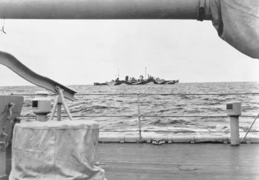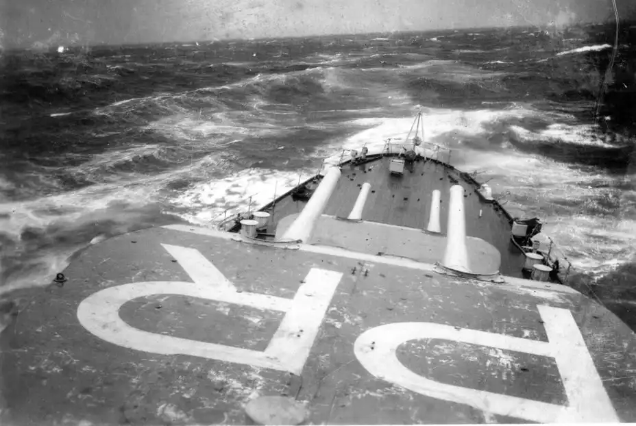 Крейсер «Perth» во время сильного шторма в Карибском море, осень 1939 года