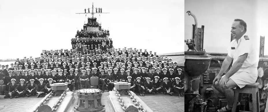 Слева — матросы и офицеры крейсера «Perth» в Австралии,