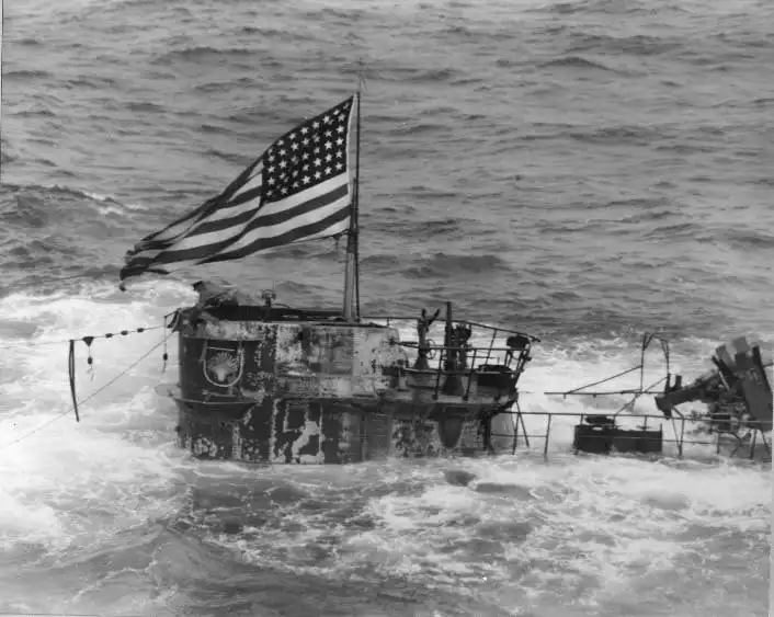 4 июня 1944 года у северо-западного побережья Африки американская группа кораблей — охотников за субмаринами, возглавляемая эскортным авианосцем «Гуадалканал», захватила немецкую океанскую подводную лодку U 505 (тип IXC). Сначала её повредил глубинными бомбами эсминец «Шателен», а потом проштурмовали палубные «Уайлдкэты» с авианосца. Немецкому экипажу, возглавлял который обер-лейтенант цур зее Харальд Ланге, оставалось только умереть от удушья под водой или сдаться. Немцы выбрали последнее.