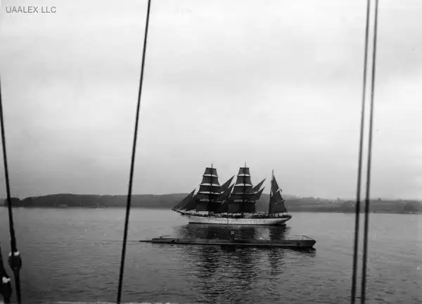 Перед парусником германская подводная лодка U-33.