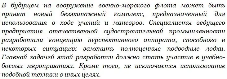 Роботизированный комплекс «Суррогат»: малая подводная лодка для учений флота