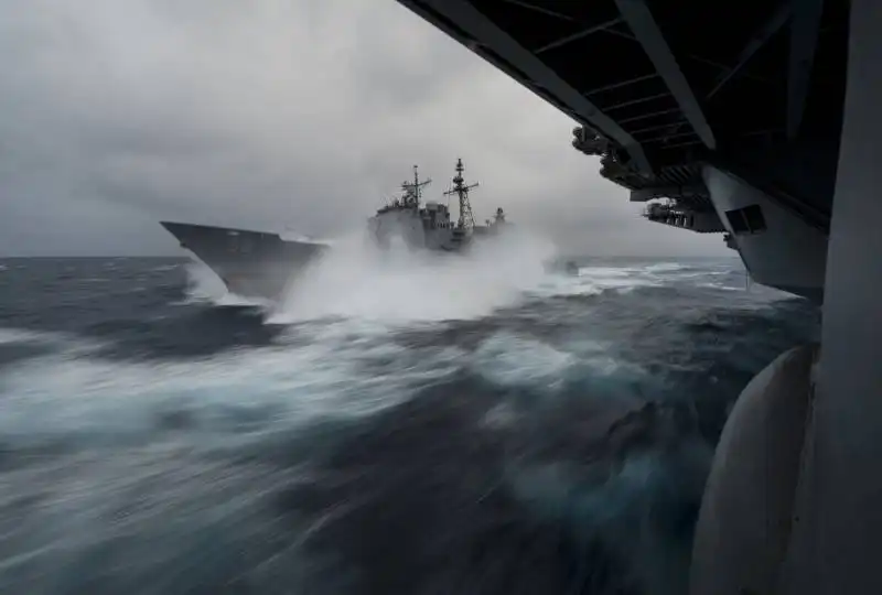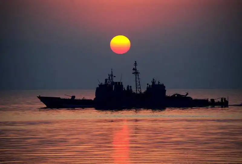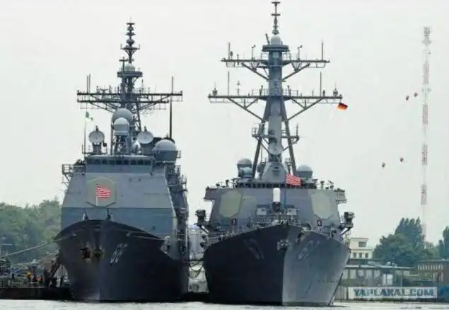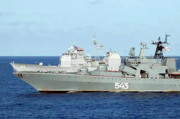 БПК "Маршал Шапошников" на фоне неуклюжего с виду USS Chosin (CG-65)